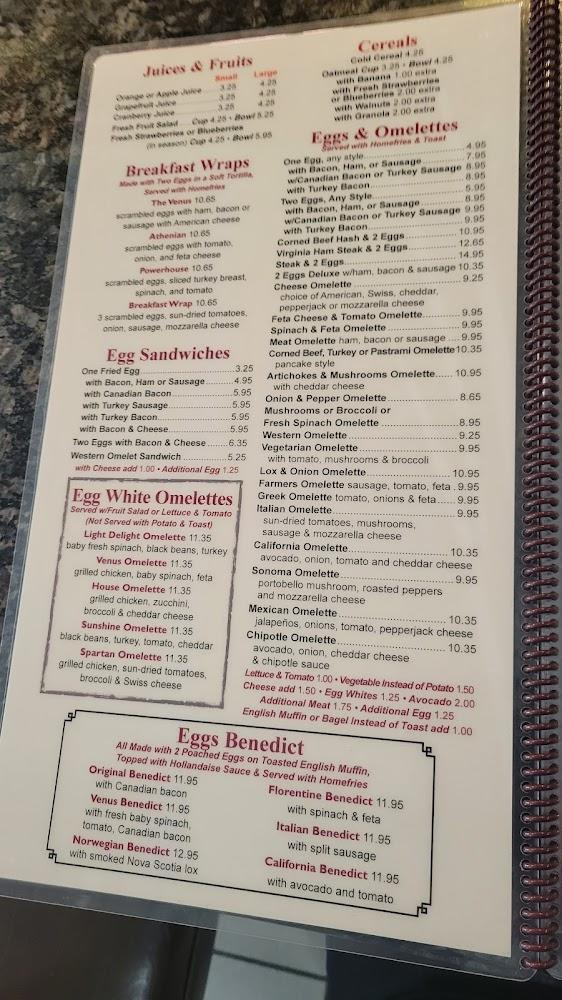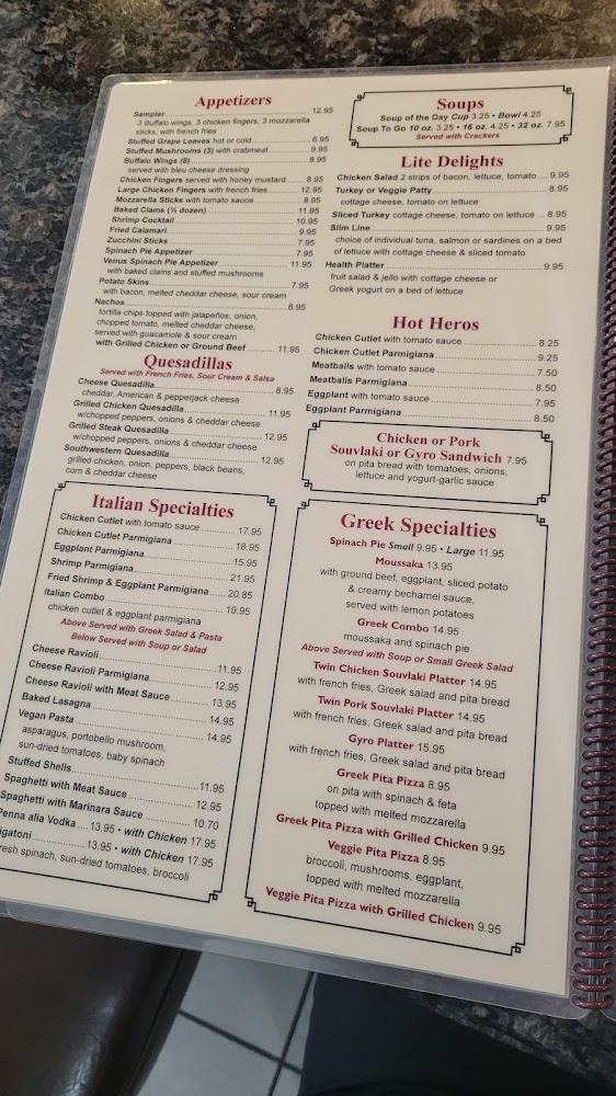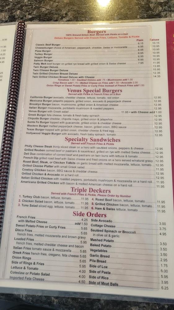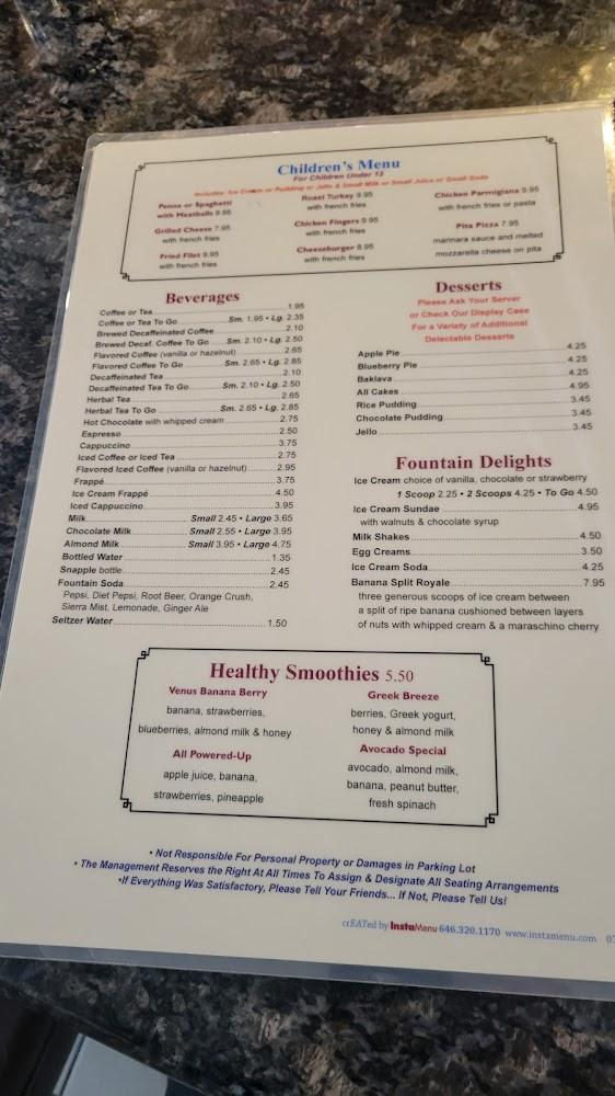 The menu at Venus Restaurant thrills with a diverse selection, featuring traditional diner fare alongside local specialties. Hearty breakfasts steal the spotlight, with many egg dishes, pancakes, and omelets crafted to perfection. Options cater to various tastes, ensuring that every palate is satisfied.